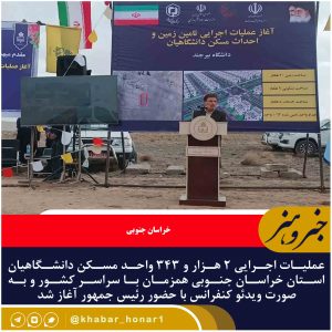 عملیات اجرایی ۲ هزار و ۳۴۳ واحد مسکن دانشگاهیان استان خراسان جنوبی همزمان با سراسر کشور و به صورت ویدئو کنفرانس با حضور رئیس جمهور