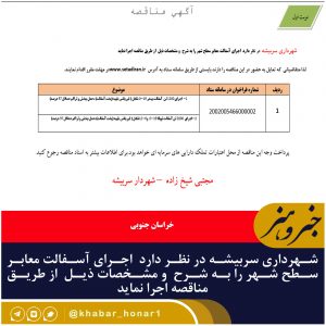 شهرداری سربیشه در نظر دارد اجرای آسفالت معابر سطح شهر را به شرح و مشخصات ذیل از طریق مناقصه اجرا نماید