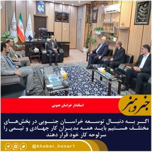 استاندار خراسان جنوبی گفت: اگر به دنبال توسعه خراسان جنوبی در بخشهای مختلف هستیم باید همه مدیران کار جهادی و تیمی را سرلوحه کار خود