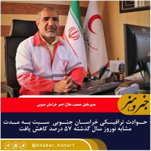 مدیرعامل جمعیت هلال احمر خراسان جنوبی گفت: حوادث ترافیکی استان در طرح نوروزی ۱۴۰۳ تاکنون نسبت به مدت مشابه نوروز سال گذشته ۵۷ درصد کاهش