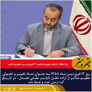 روز ۱۲ فروردین ماه ۱۳۵۸ به عنوان نماد تغییر و تحولی عظیم متأثر از اراده خلل ناپذیر ملتی همدل ، در تاریخ کره زمین ثبت و ضبط شد