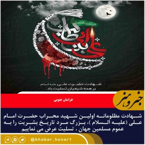 شهادت مظلومانه اولین شهید محراب حضرت امام علی (علیه السلام )، بزرگ مرد تاریخ بشریت را به عموم مسلمین جهان ، تسلیت عرض می نماییم
