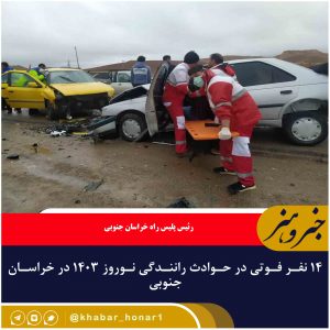 در ایام نوروز امسال ۱۴ نفر در حوادث رانندگی در خراسان جنوبی قربانی شدند. رئیس پلیس راه استان گفت: ۲۰۰ نفر نیز در ۳۳۲ حادثه
