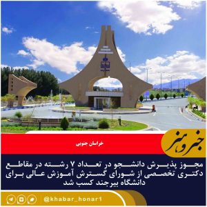 مجوز پذیرش دانشجو در تعداد ۷ رشته در مقاطع دکتری تخصصی از شورای گسترش آموزش عالی برای دانشگاه بیرجند کسب شد. ، معاون آموزشی و