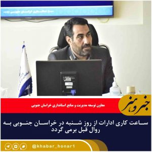 ?معاون توسعه مدیریت و منابع استانداری خراسان جنوبی گفت: ساعت کاری ادارات خراسان جنوبی از روز شنبه به روال قبل برمی گردد. ناصر ناصری خاطر