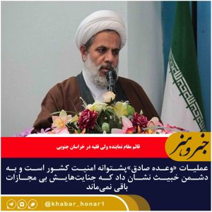 قائم مقام نماینده ولی فقیه در خراسان جنوبی گفت: عملیات «وعده صادق»پشتوانه امنیت کشور است و به دشمن خبیث نشان داد که جنایتهایش بی مجازات