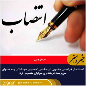 استاندار خراسان جنوبی در حکمی “حسین خیاط” را به عنوان سرپرست فرمانداری سرایان منصوب کرد. در متن حکم انتصاب حسین خیاط که روز چهارشنبه منتشر