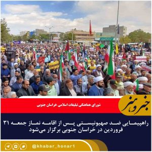 راهپیمایی ضد صهیونیستی پس از اقامه نماز جمعه ۳۱ فروردین در خراسان جنوبی برگزار میشود