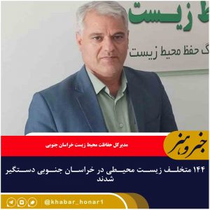 مدیرکل حفاظت محیط زیست خراسان جنوبی گفت: ۱۴۴ متخلف زیست محیطی سال گذشته در این استان دستگیر و به مراجع قضایی معرفی شدند. اسدالله حاتمی