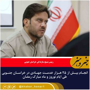 رییس بسیج سازندگی خراسان جنوبی گفت: طی ایام نوروز و ماه مبارک رمضان ۲۵ هزار و ۴۴۹ خدمت توسط گروههای جهادی در استان صورت گرفته