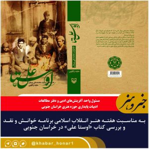 به مناسبت هفته هنر انقلاب اسلامی و سالروز شکست نظامی آمریکا در صحرای طبس برنامه خوانش و نقد و بررسی کتاب «اوستا علی» در خراسان