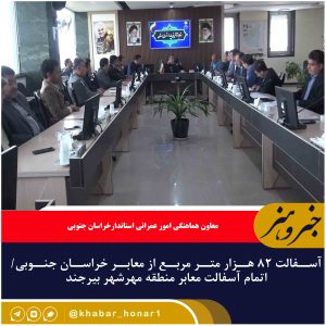 آسفالت ۸۲ هزار متر مربع از معابر خراسان جنوبی/ اتمام آسفالت معابر منطقه مهرشهر بیرجند