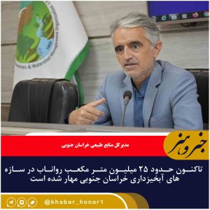 مدیرکل منابع طبیعی خراسان جنوبی گفت:طبق آخرین آمار با توجه به سیلاب در اردیبهشت ماه تا به امروز ۲۵ میلیون متر مکعب رواناب در سازههای