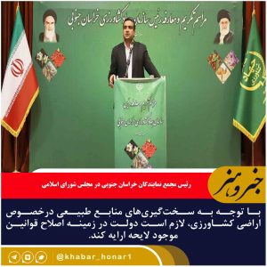 رئیس مجمع نمایندگان خراسان جنوبی در مجلس شورای اسلامی گفت: با توجه به سختگیریهای منابع طبیعی درخصوص اراضی کشاورزی، لازم است دولت در زمینه اصلاح
