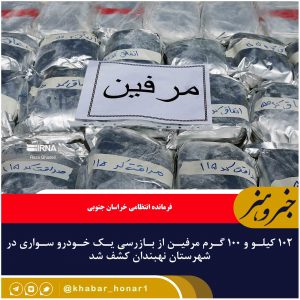 کشف بیش از ۱۰۲ کیلوگرم مرفین در شهرستان نهبندان