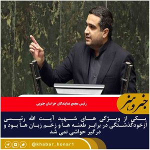 رئیس مجمع نمایندگان خراسان جنوبی گفت: یکی از ویژگی های شهید آیت الله رئیسی ازخودگذشتگی در برابر طعنه ها و زخم زبان ها بود و