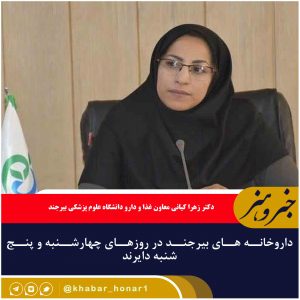 ?داروخانه های شهرستان بیرجند در ایام تعطیل پایان این هفته طی روزهای چهارشنبه و پنج شنبه فعال و مطابق روال عادی ارائه خدمات دارویی به