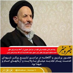 پیام قدردانی نماینده ولی فقیه در خراسان جنوبی از آحاد مردم برای خلق حماسه باشکوه تشییع پیکر مطهر رئیس جمهور شهید خادم الرضا آیت الله