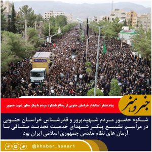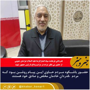 قدردانی فرمانده سپاه انصارالرضا علیه السلام خراسان جنوبی از حضور بی نظیر مردم در مراسم وداع با رئیس جمهور شهید حضور گسترده و باشکوه مردم
