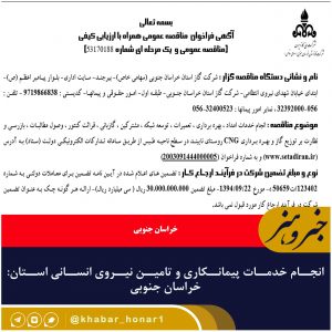 بسمه تعالی آگهی فراخوان مناقصه عمومی همراه با ارزیابی کیفی (مناقصه عمومی و یک مرحله ای شماره ۵۳۱۷۰۱۸۸) نام و نشانی دستگاه مناقصه گزار