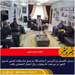 برای تکمیل بزرگترین آزمایشگاه مرجع مشتقات نفتی شرق کشور در بیرجند ۵۰ میلیارد ریال اعتبار اختصاص یافت