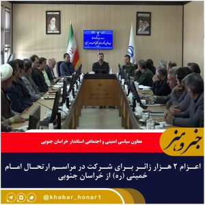 ۲ هزار زائر از خراسان جنوبی از شنبه ۱۲ خرداد برای شرکت در مراسم ارتحال امام خمینی (ره) اعزام می شوند. ، معاون سیاسی امنیتی