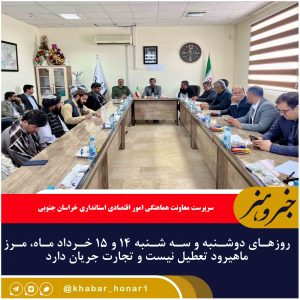 سرپرست معاونت هماهنگی امور اقتصادی استانداری خراسان جنوبی گفت: روزهای دوشنبه و سه شنبه ۱۴ و ۱۵ خرداد ماه، مرز ماهیرود تعطیل نیست و تجارت