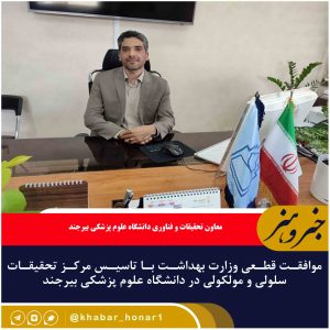 معاون تحقیقات و فناوری دانشگاه علوم پزشکی بیرجند از موافقت قطعی وزارت بهداشت با تاسیس مرکز تحقیقات سلولی و مولکولی در دانشگاه علوم پزشکی بیرجند
