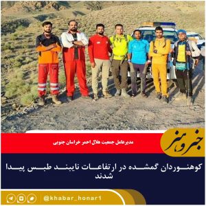 مدیرعامل جمعیت هلال احمر خراسان جنوبی از پیدا شدن چهار کوهنورد گمشده در ارتفاعات نایبند با تلاش تیمهای امداد و نجات این جمعیت خبر داد.