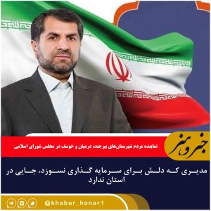 نماینده مردم شهرستانهای بیرجند، درمیان و خوسف در مجلس شورای اسلامی با بیان اینکه روحیه سرمایهپذیری باید در استان تقویت شود، گفت: مدیری که دلش
