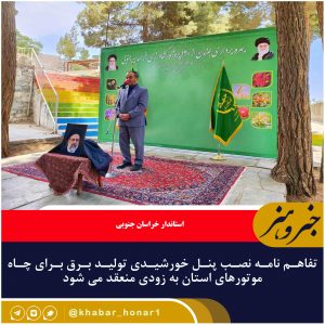 ?استاندار خراسان جنوبی گفت: تفاهم نامه نصب پنل خورشیدی تولید برق برای چاه موتورهای استان به زودی بین سازمان جهاد کشاورزی و بانک مهر ایران