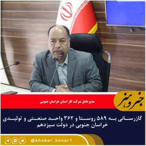 مدیرعامل شرکت گاز استان خراسان جنوبی گفت: در دولت مردمی و انقلابی سیزدهم ۵۸۹ روستا و ۳۶۲ واحد صنعتی و تولیدی در استان خراسان جنوبی