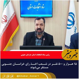 رئیس ستاد انتخابات استان خراسان جنوبی گفت: ۱۵ هزار و ۵۰۰ نفر اعضای شعب اخذ رای انتخابات چهاردهمین دوره ریاست جمهوری در سراسر استان سازماندهی