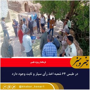 – فرماندار ویژه طبس گفت: در طبس ۶۴ شعبه اخذ رأی سیار و ثابت وجود دارد و از رأس ساعت ۸ تمام شعبههای این شهرستان