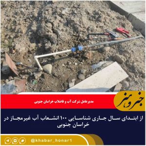 – مدیرعامل شرکت آب و فاضلاب خراسان جنوبی گفت: از ابتدای سال جاری تاکنون ۱۰۰ انشعاب آب غیرمجاز در استان شناسایی و قطع شده است.