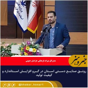 مدیرکل میراث فرهنگی خراسان جنوبی گفت: رونق صنایع دستی استان در گرو افزایش استاندارد و کیفیت تولید است. هادی شاهوردی اظهار کرد: رونق صنایع دستی