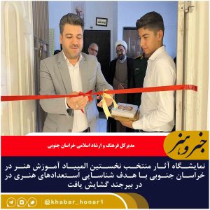 – نمایشگاه آثار منتخب نخستین المپیاد آموزش هنر در خراسان جنوبی با هدف شناسایی استعدادهای هنری در در بیرجند گشایش یافت. مدیرکل فرهنگ و ارشاد