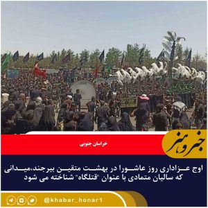 اوج عزاداری روز عاشورا در بهشت متقین بیرجند رقم میخورد؛ میدانی که سالیان متمادی با عنوان “قتلگاه” محل اجتماع هیاتهای مذهبی و قشرهای مختلف مردم