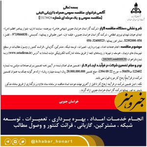بسمه تعالی آگهی فراخوان مناقصه عمومی همراه با ارزیابی کیفی (مناقصه عمومی و یک مرحله ای شماره ۵۳۱۷۴۴۲۴) نام و نشانی دستگاه مناقصه گزار