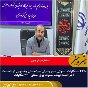 ۴۳۵ مگاوات انرژی نو برای خراسان جنوبی در دست اجرا است/پیک مصرف برق استان ۴۳۰ مگاوات