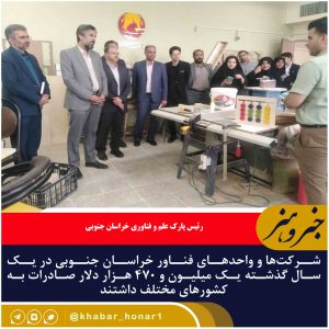 شرکتها و واحدهای فناور خراسان جنوبی در یک سال گذشته یک میلیون و ۴۷۰ هزار دلار صادرات به کشورهای مختلف داشتند