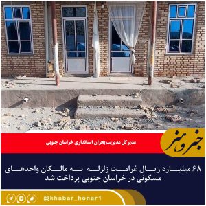 ۶۸ میلیارد ریال غرامت زلزله به مالکان واحدهای مسکونی در خراسان جنوبی پرداخت شد