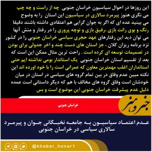 عدم اعتماد سیاسیون به جامعه نخبگانی جوان و پیرمرد سالاری سیاسی در خراسان جنوبی