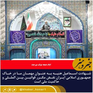 امام جمعه موقت بیرجند گفت: شهادت اسماعیل هنیه به عنوان مهمان ما در خاک جمهوری اسلامی ایران نقض مکرر قوانین بین المللی و حاکمیت ملی