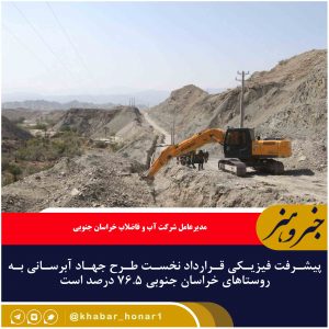پیشرفت فیزیکی قرارداد نخست طرح جهاد آبرسانی به روستاهای خراسان جنوبی ۷۶.۵ درصد است