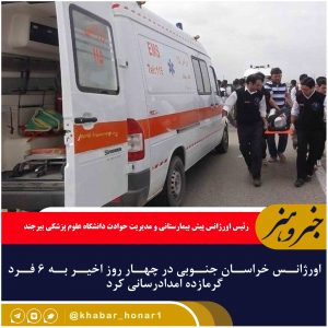رئیس اورژانس پیش بیمارستانی و مدیریت حوادث دانشگاه علوم پزشکی بیرجند گفت: در چهار روز اخیر که دمای هوا افزایشی بوده کارشناسان فوریتهای پزشکی اورژانس