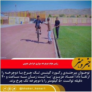 رئیس هیات دوچرخه سواری خراسان جنوبی گفت: ورزشکار با اخلاق و نوجوان ۱۳ ساله بیرجندی رکورد گینس در تک چرخ با دوچرخه را ارتقا داد.
