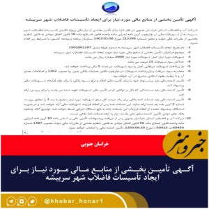 آگهی تأمین بخشی از منابع مالی مورد نیاز برای ایجاد تأسیسات فاضلاب شهر سربیشه