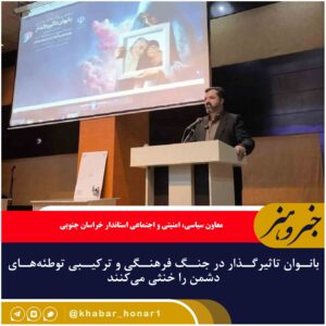 معاون سیاسی، امنیتی و اجتماعی استاندار خراسان جنوبی گفت: بانوان تاثیرگذار در جنگ فرهنگی و ترکیبی میتوانند با جهاد تبیین به وظایف شرعی، دینی و