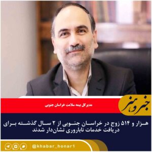مدیرکل بیمه سلامت خراسان جنوبی گفت: هزار و ۵۱۴ زوج در استان از ۲ سال گذشته تاکنون برای دریافت خدمات ناباروری نشاندار شدند. علی اربابی اظهار